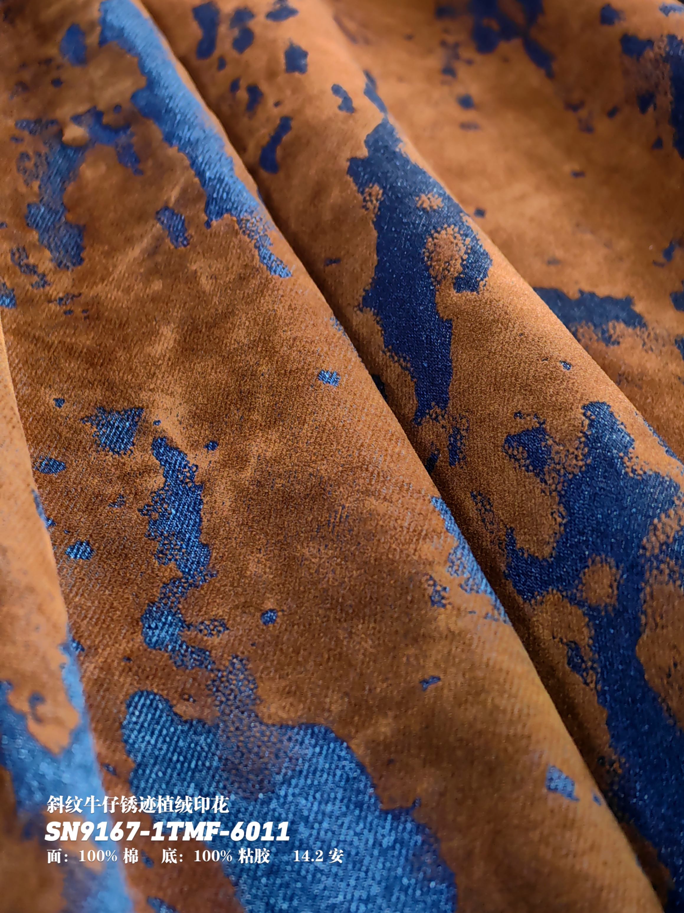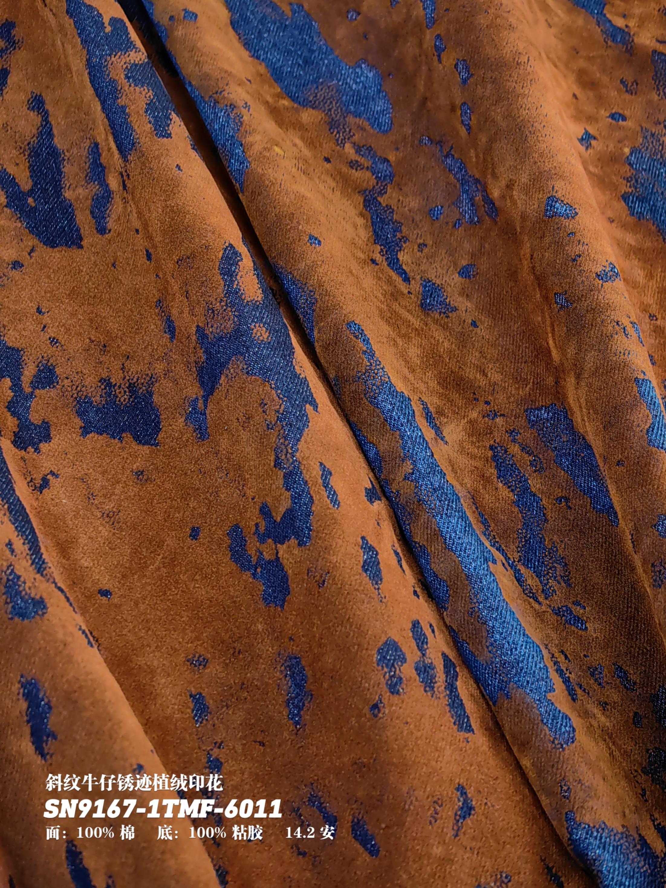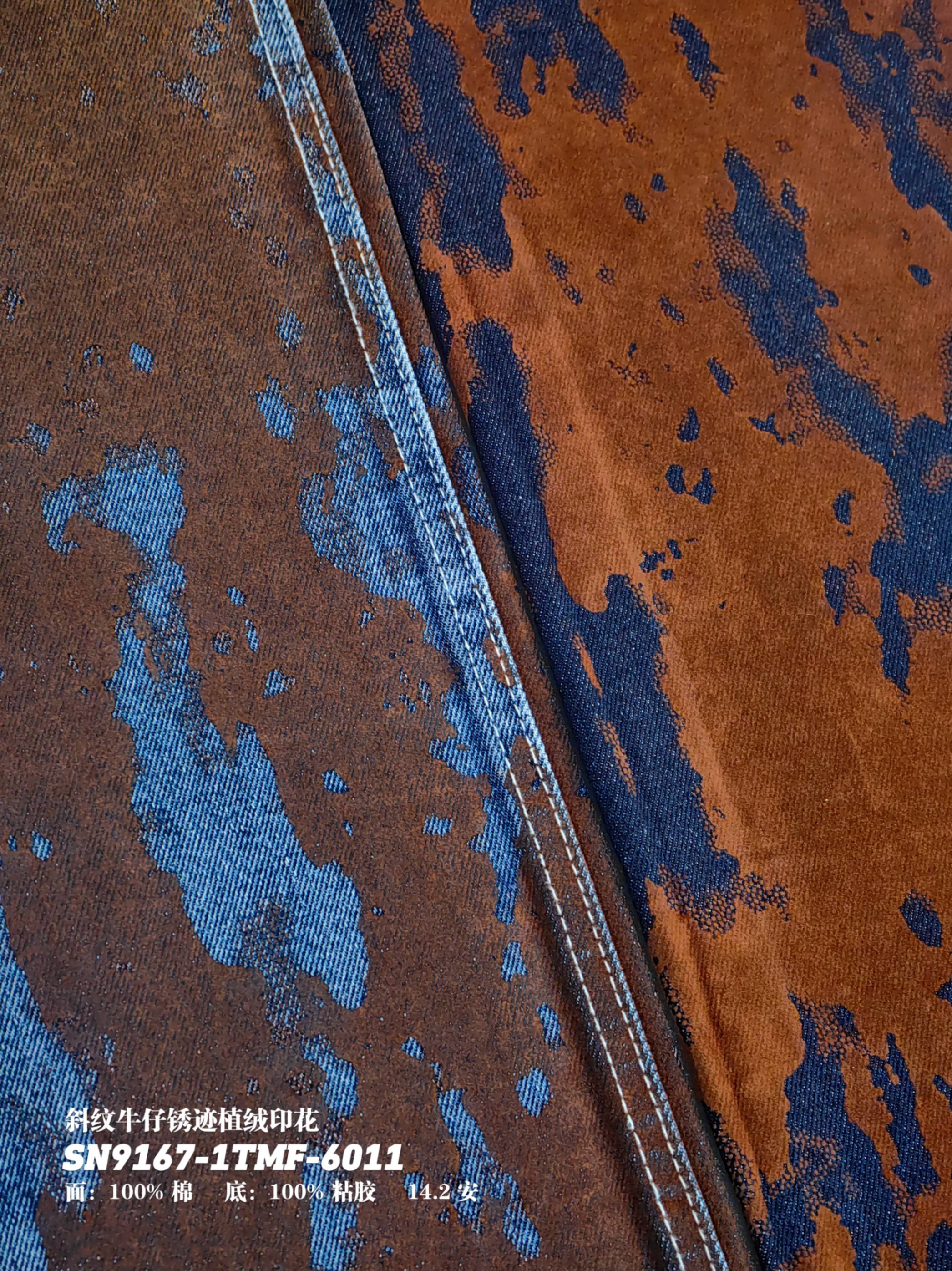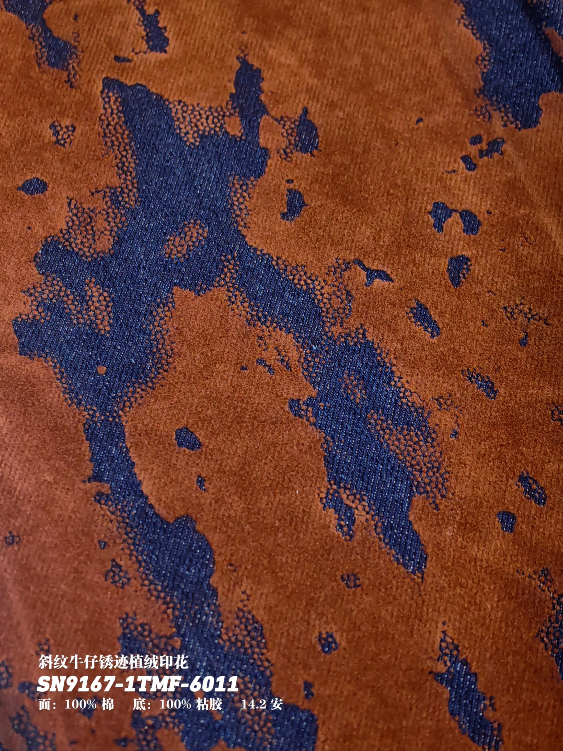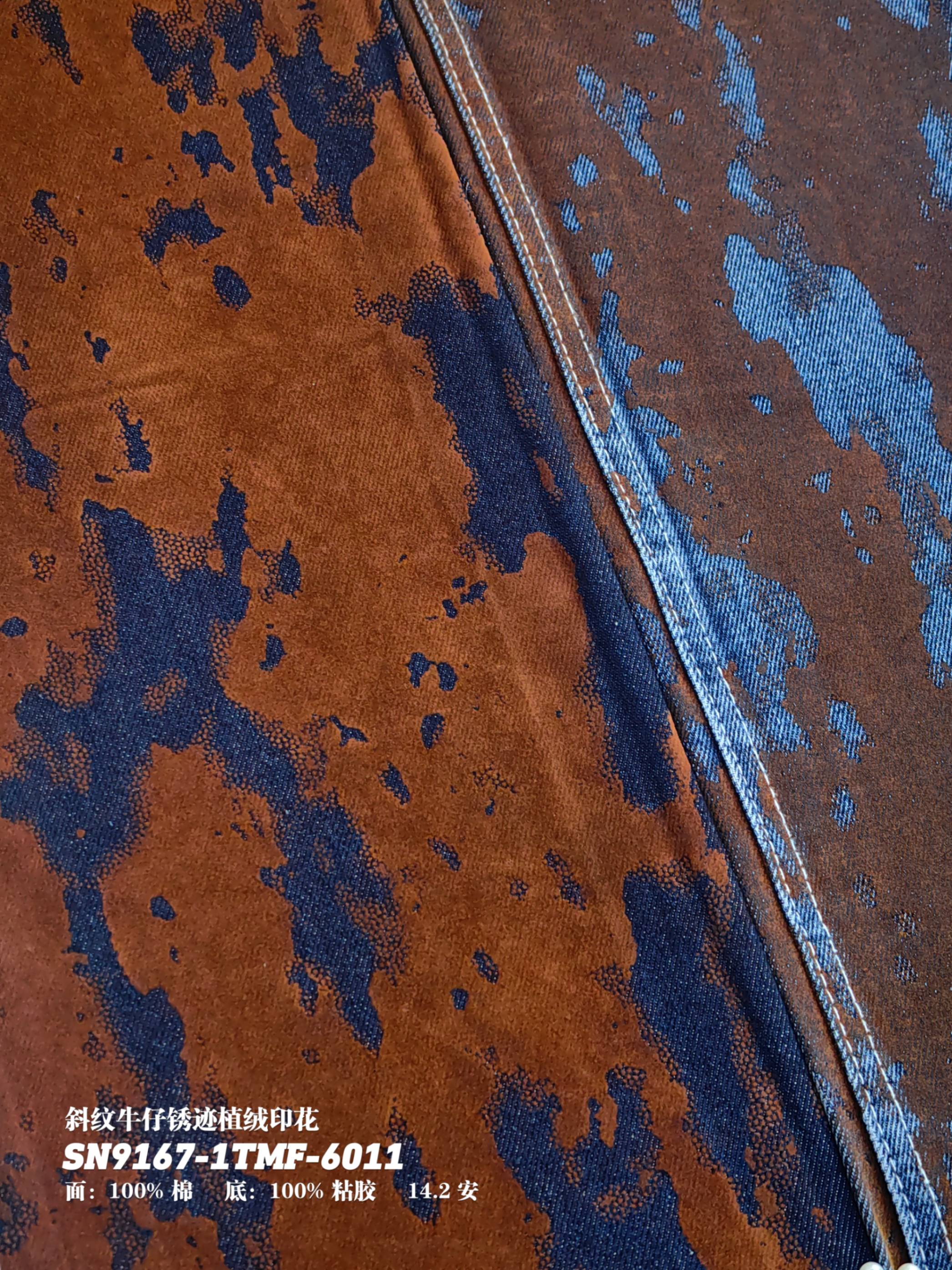 斜纹牛仔锈迹植绒印花SN9167-1TMF-6011