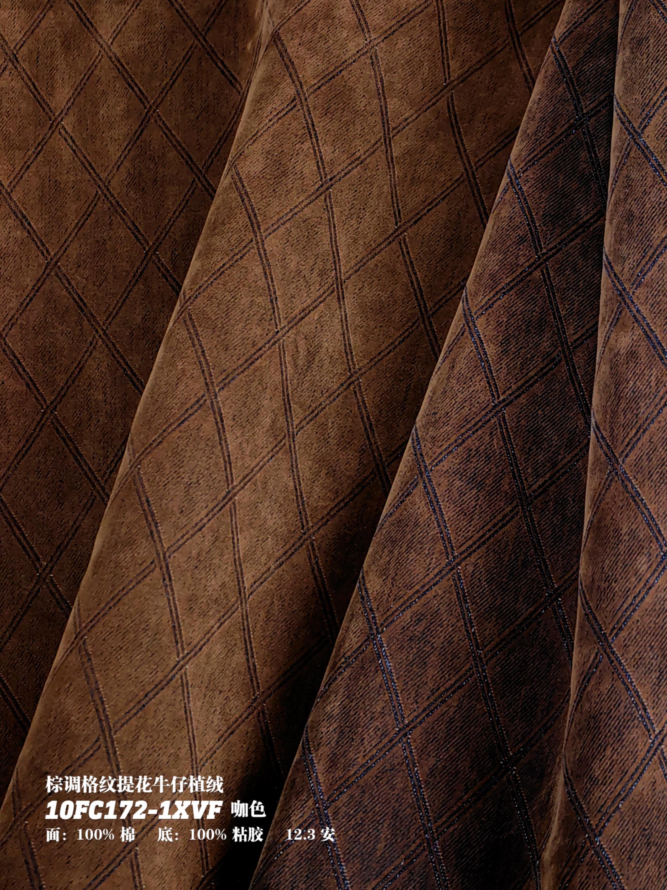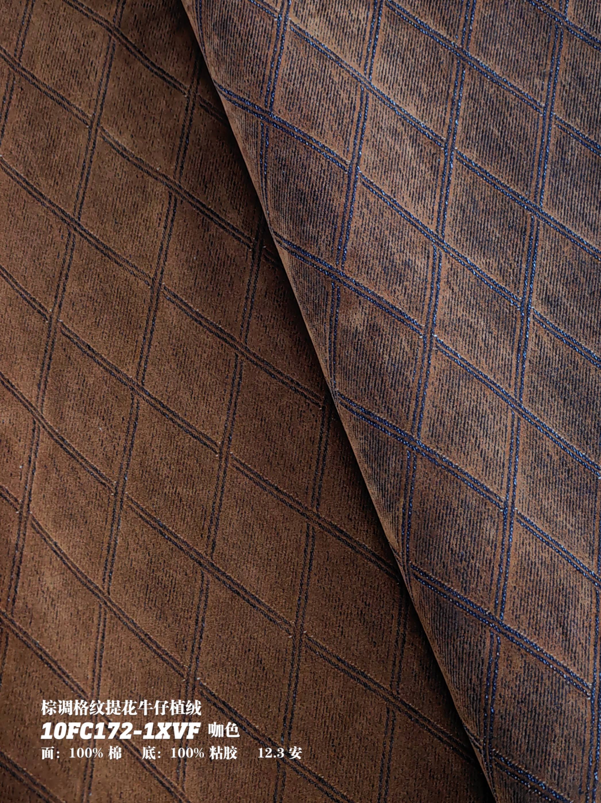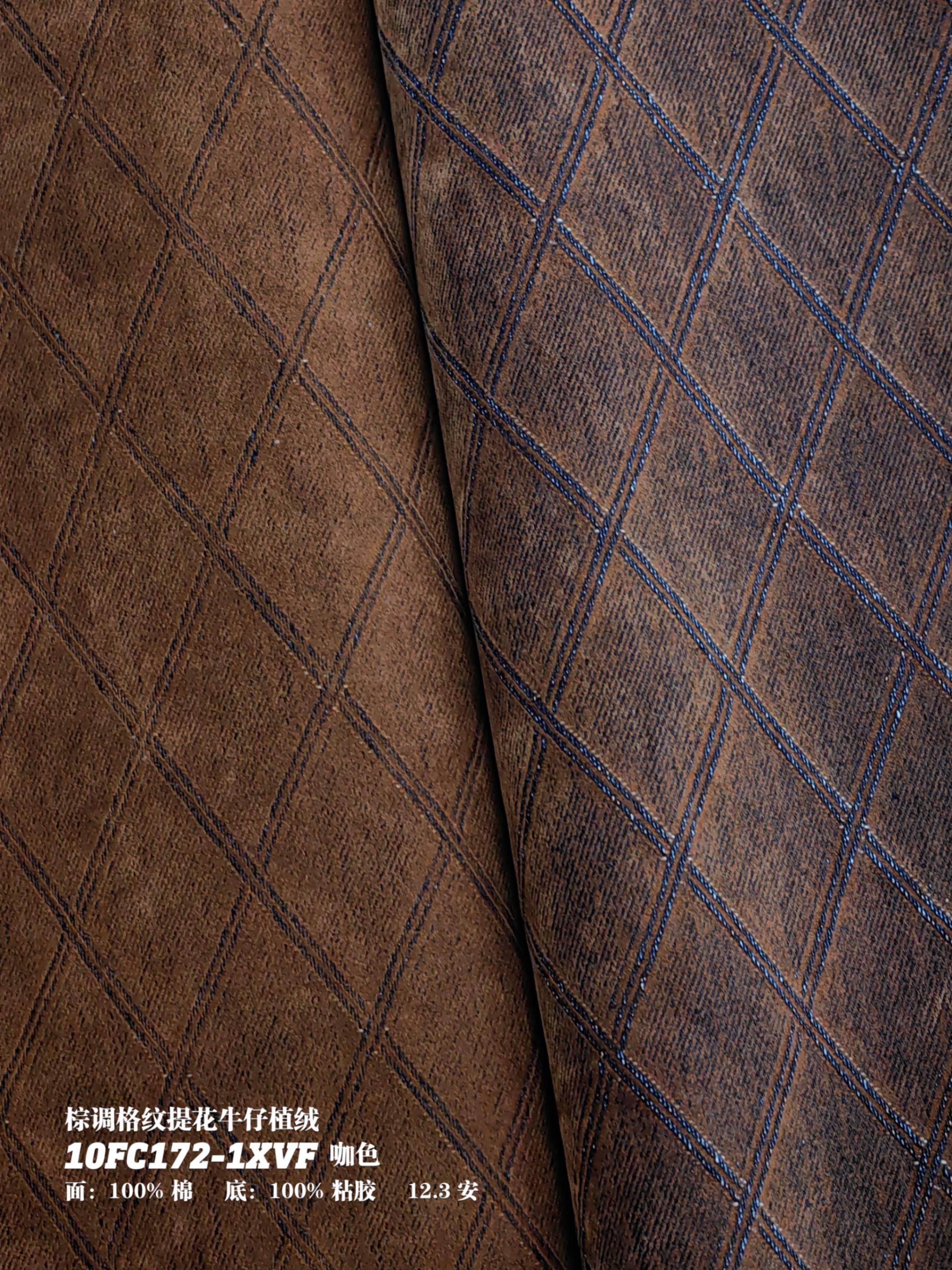 棕调格纹提花牛仔植绒10FC172-1XVF咖色