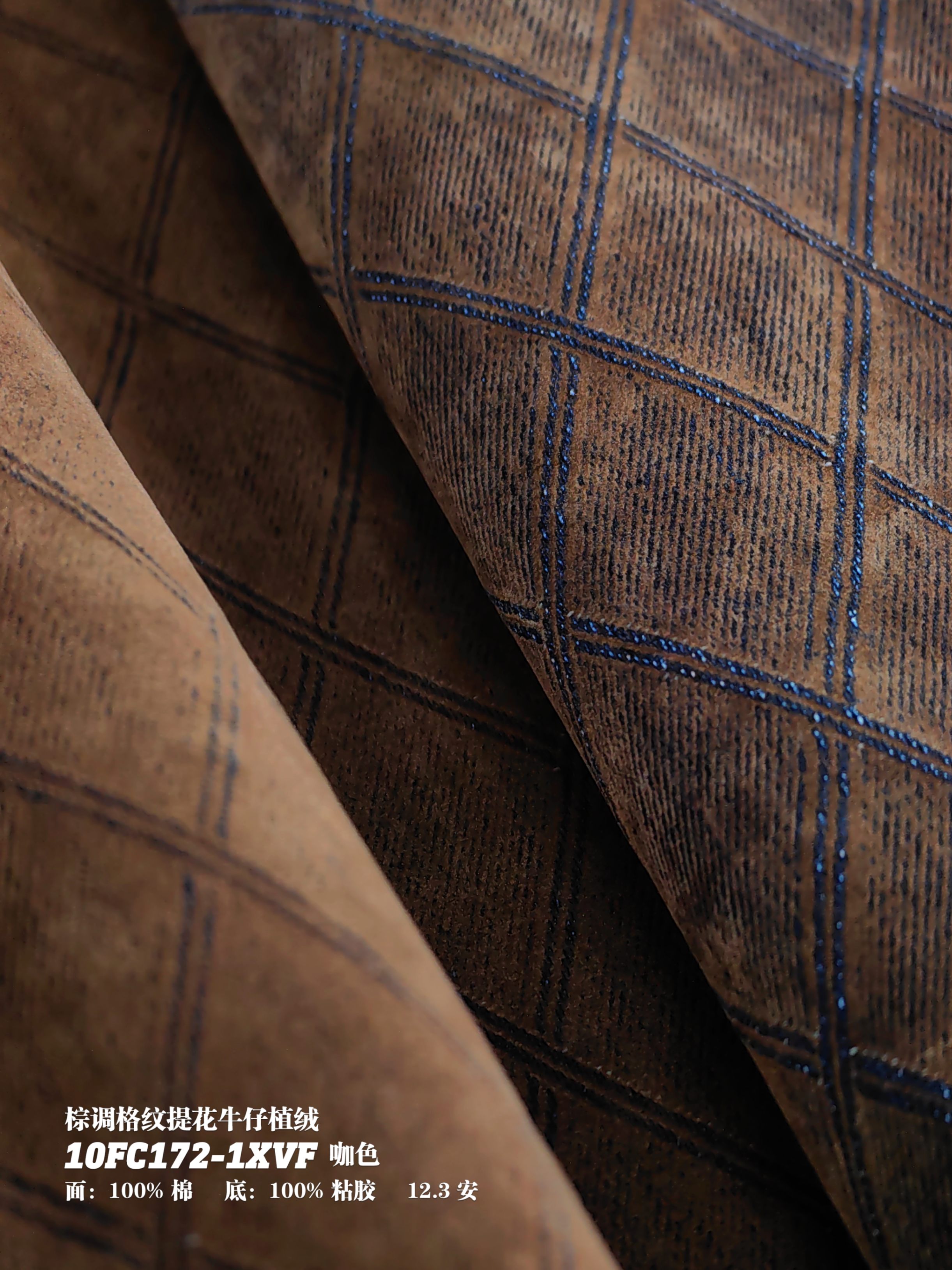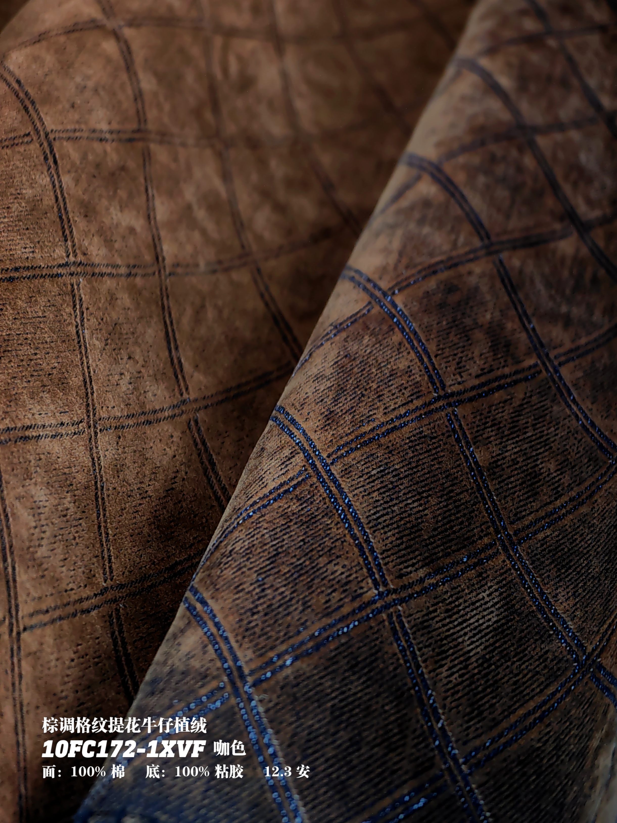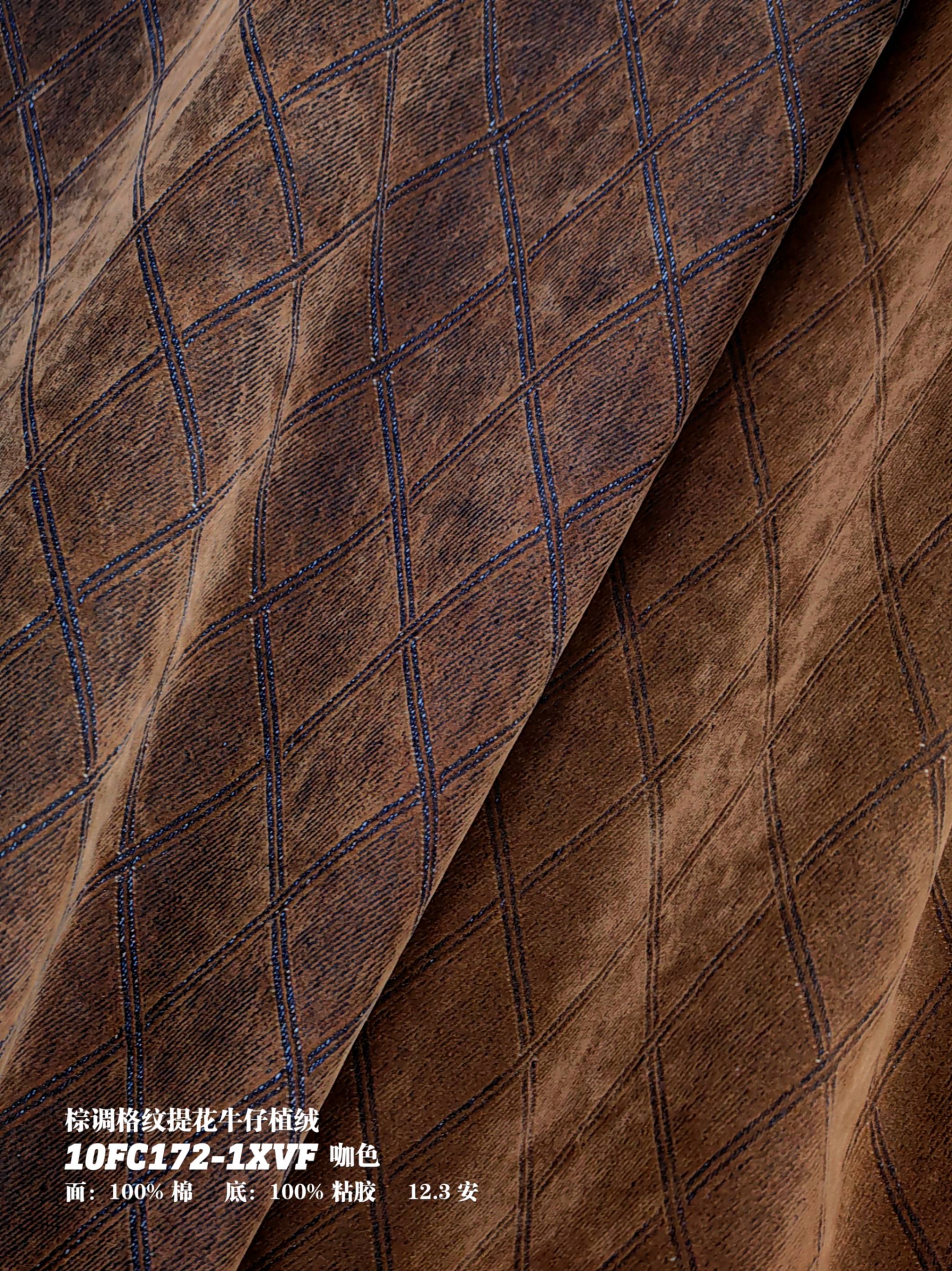 棕调格纹提花牛仔植绒10FC172-1XVF咖色