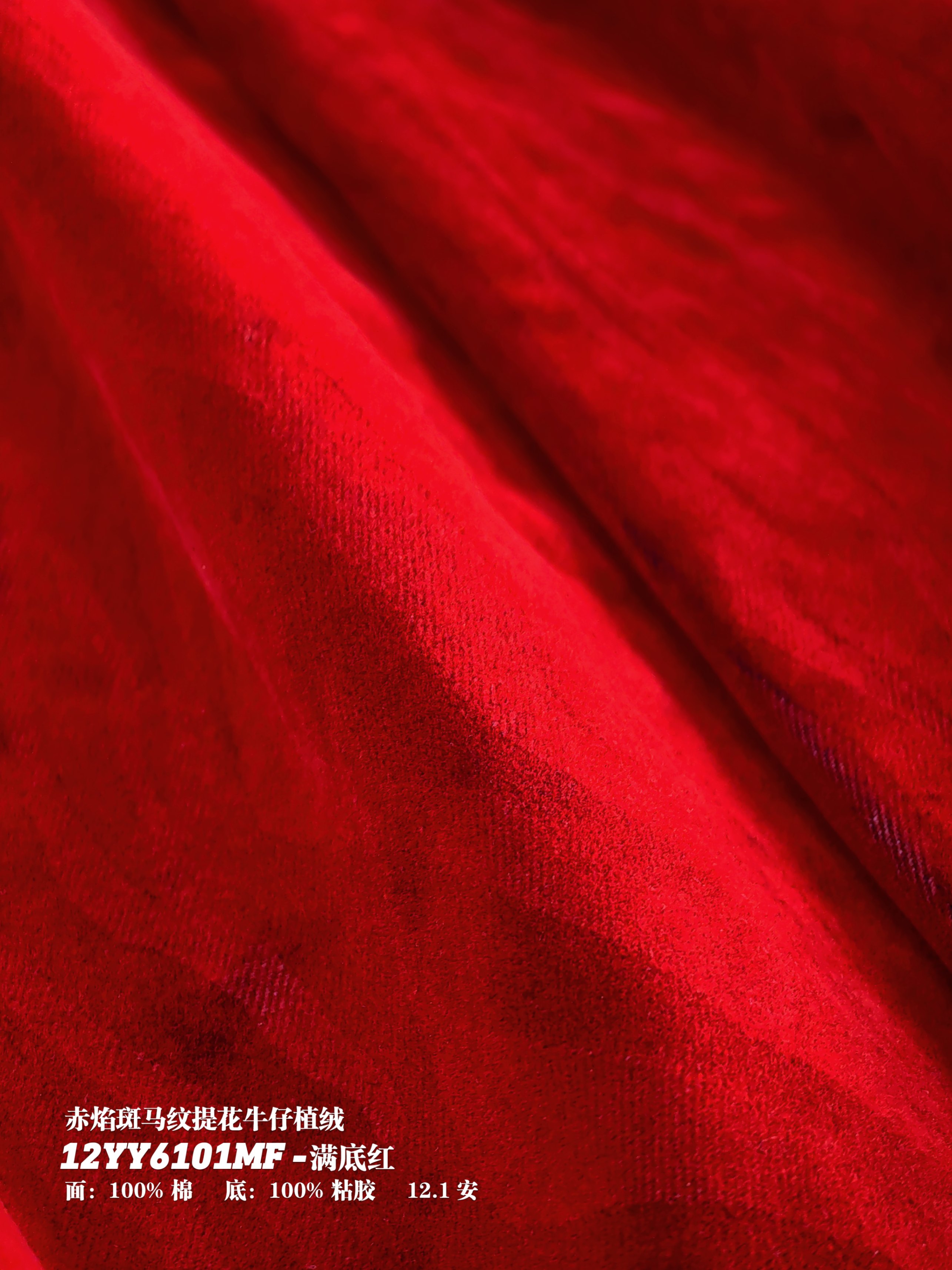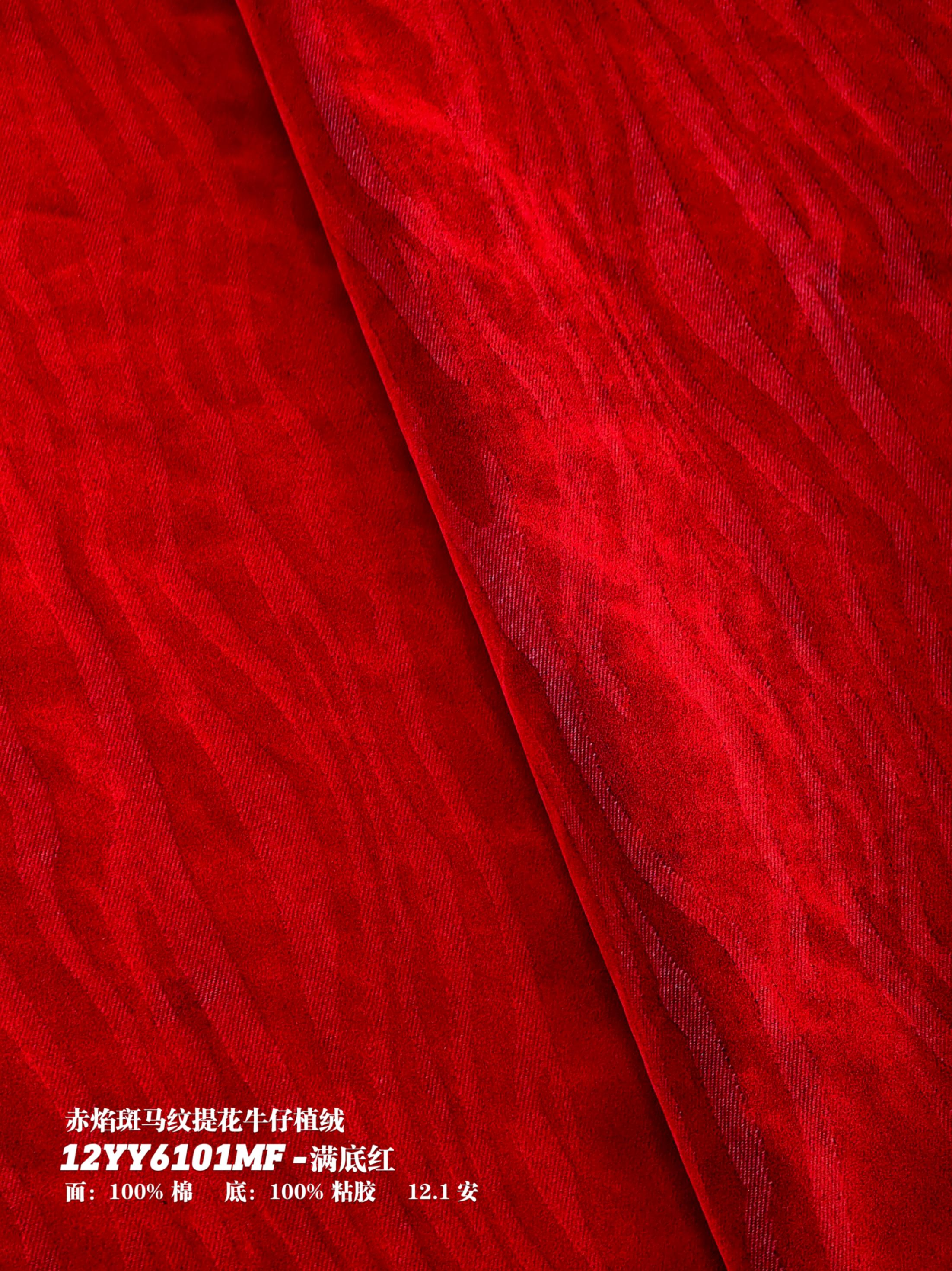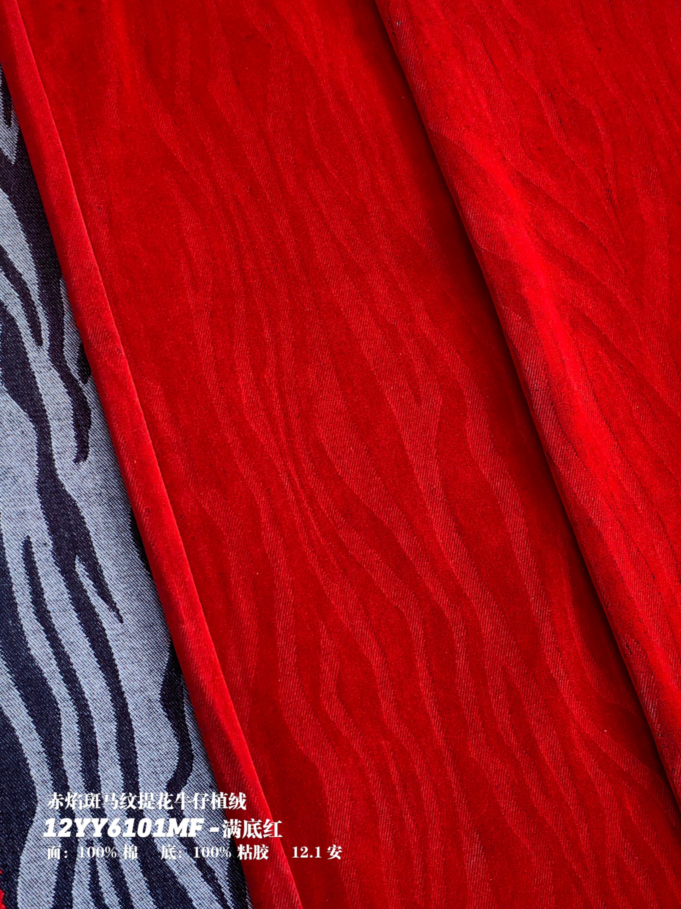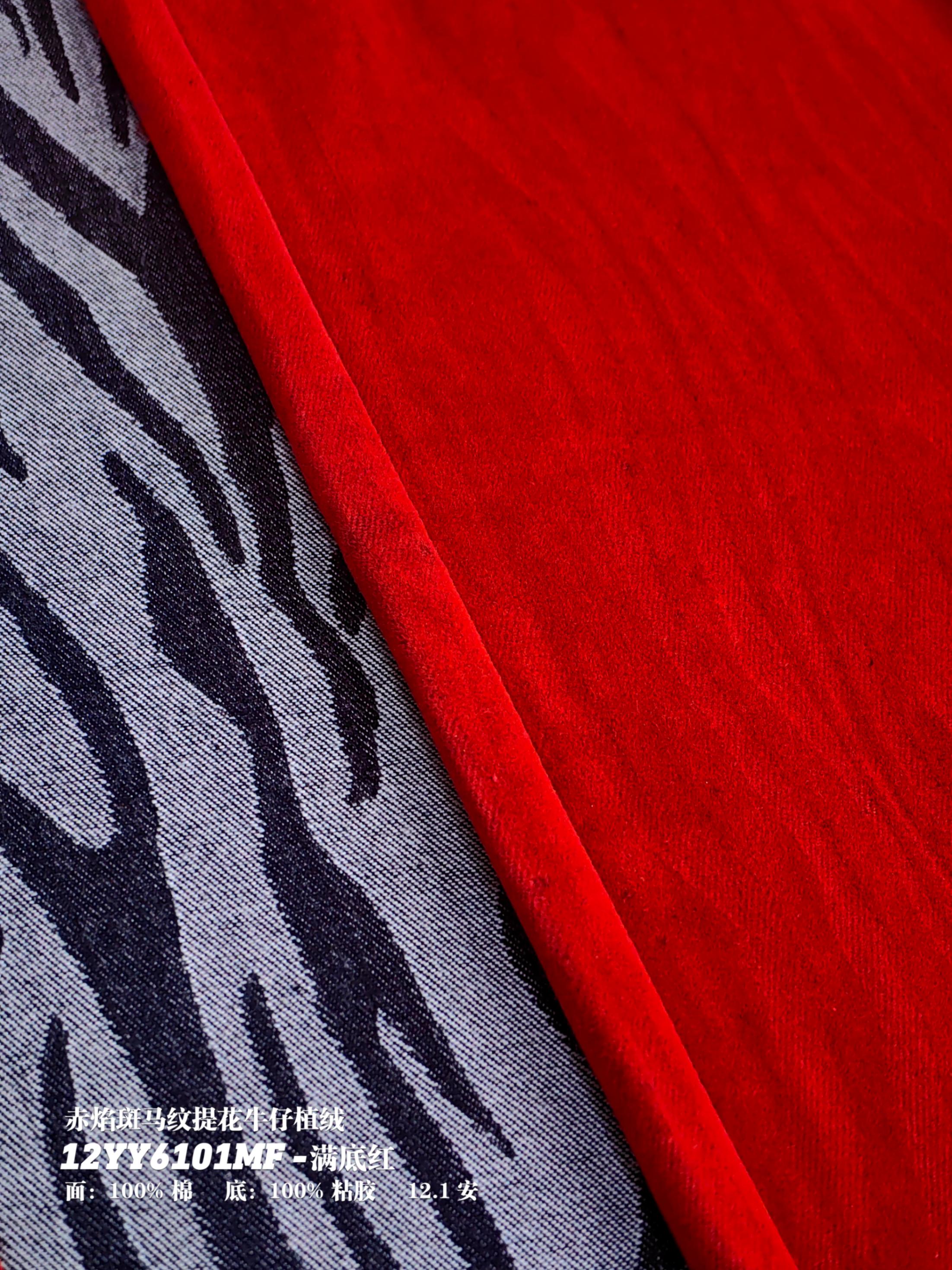 赤焰斑马纹提花牛仔植绒12YY6101MF满底红