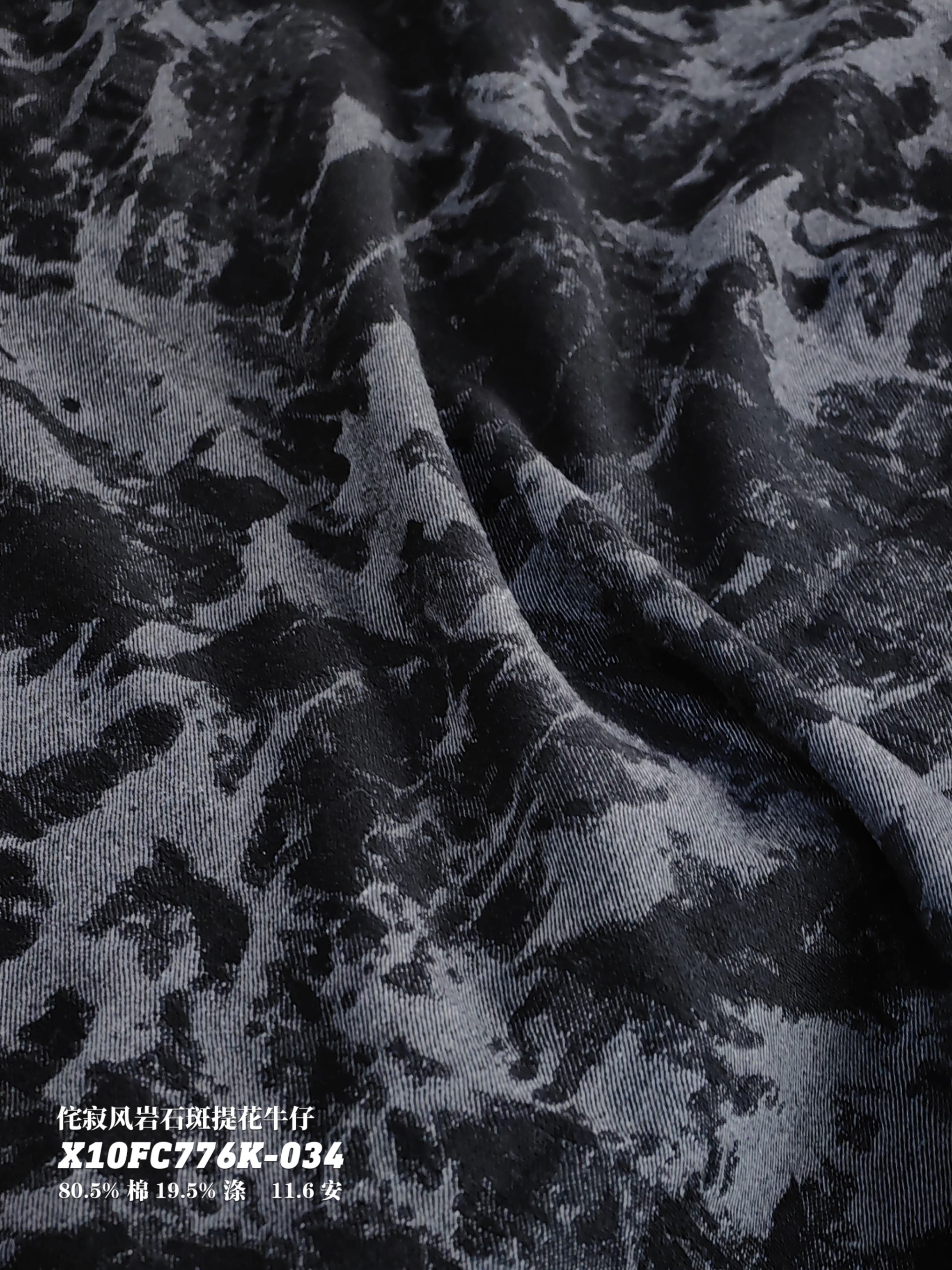 侘寂风岩石斑提花牛仔X10FC776K-034