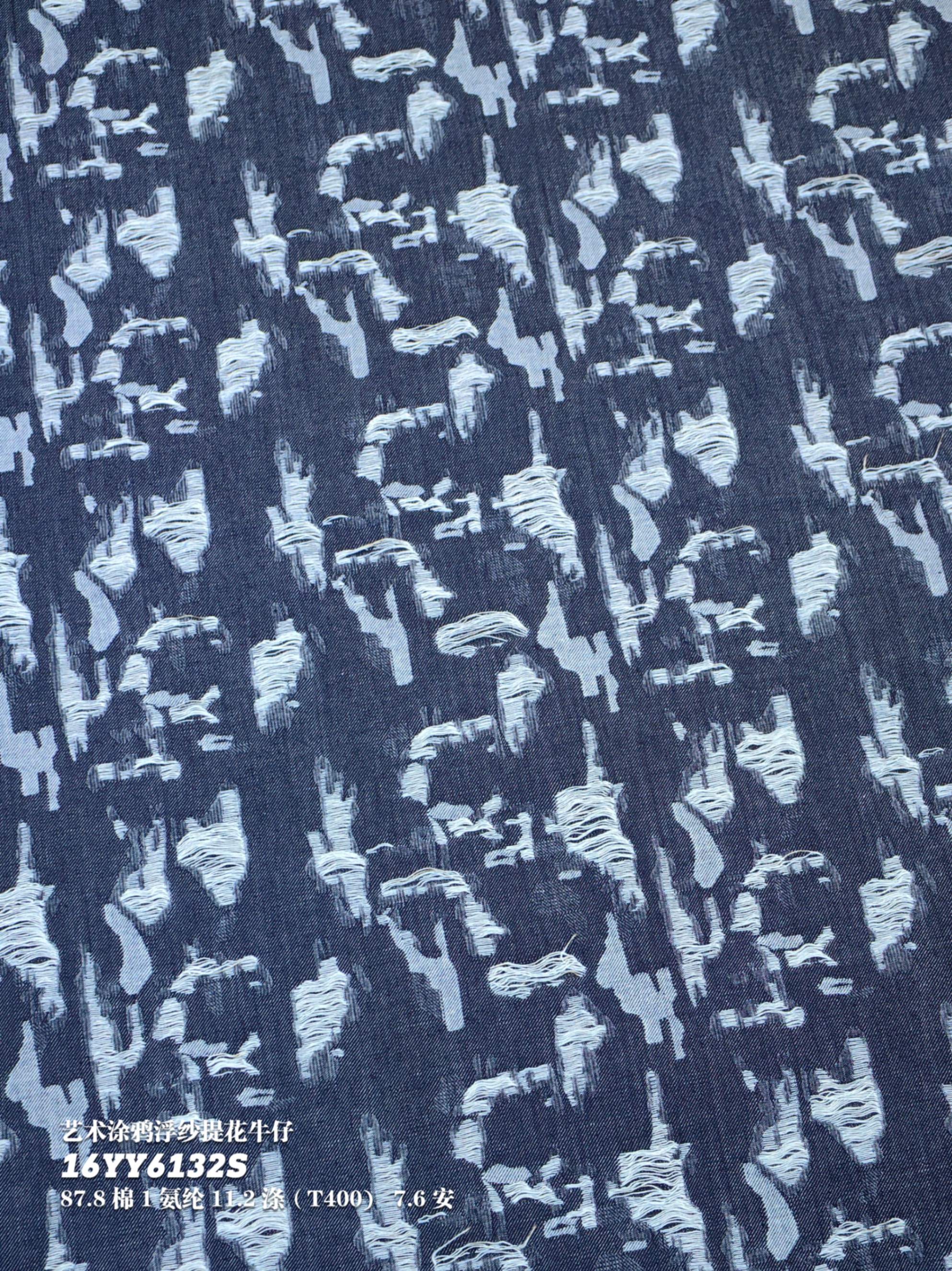 艺术涂鸦浮纱提花牛仔 16YY6132S